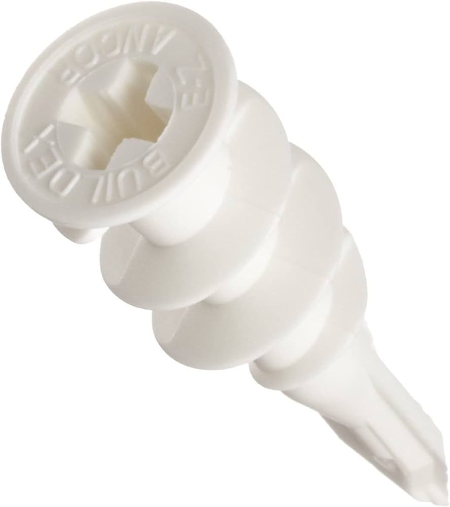 Drywall Anchors: Drywall anchors are designed specifically for use with drywall, which is a lightweight material commonly used for interior walls. These anchors typically consist of a plastic sleeve or plug that is inserted into a pre-drilled hole in the drywall. When a screw is inserted into the anchor, it expands and grips the inside of the drywall, providing a secure attachment point. Drywall anchors are suitable for lightweight to medium-weight objects such as pictures, mirrors, towel bars, and small shelves.